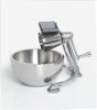 SL-005 manual salad cutter: Main body is for zinc alloy with chrome plating 5 cutting cones: 0.7mm stainless steel 304 with brushed Human design: Food push: when the food is small, you can put it down and press the small food .in this way. you can protect your finger and save foods. No.1-shreder (beets, carrots, turnips, potatoes, cracker, dry bread celery frozen foods/ lemons) No.2-stringer (designed for onions, carrots, chees apples, potatos) No.3-french fryer (designed for carrots, beets, turnips, fruit, melon, potatoes) No.4-thin slicer (designed for radishes onions, pickles sauerkraut, cole salw) No.5-waffler( designed for potatoes, apples, pickled beets, cook, slice, bananas, carrots) So you could use it making you own baby foods.